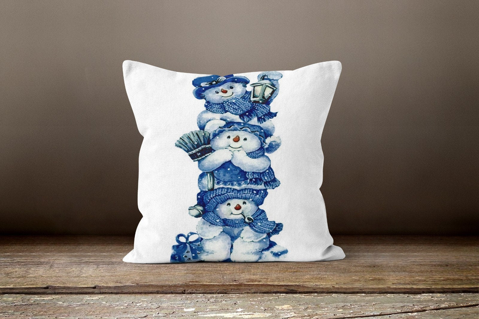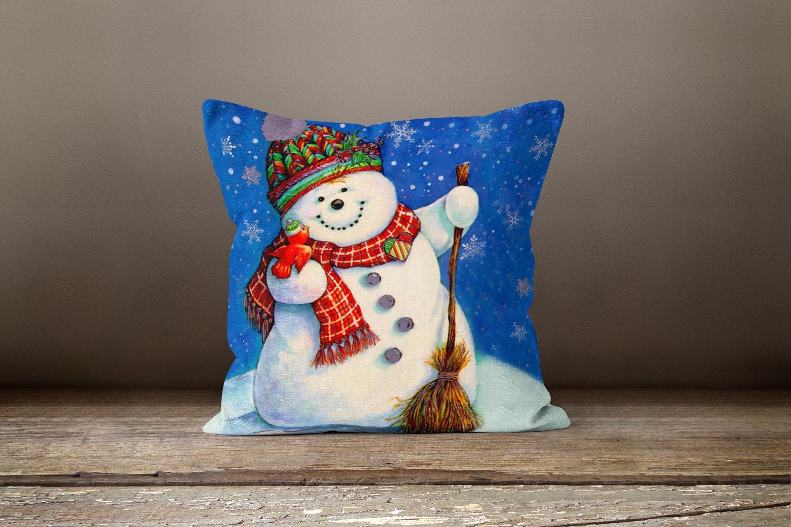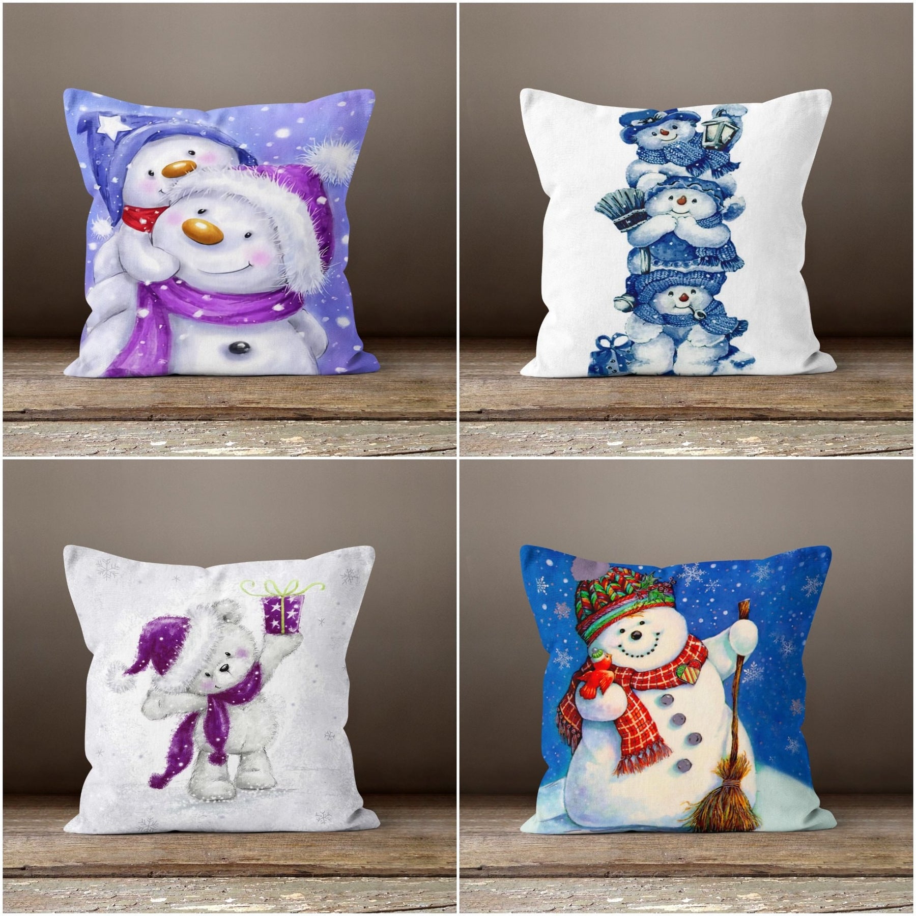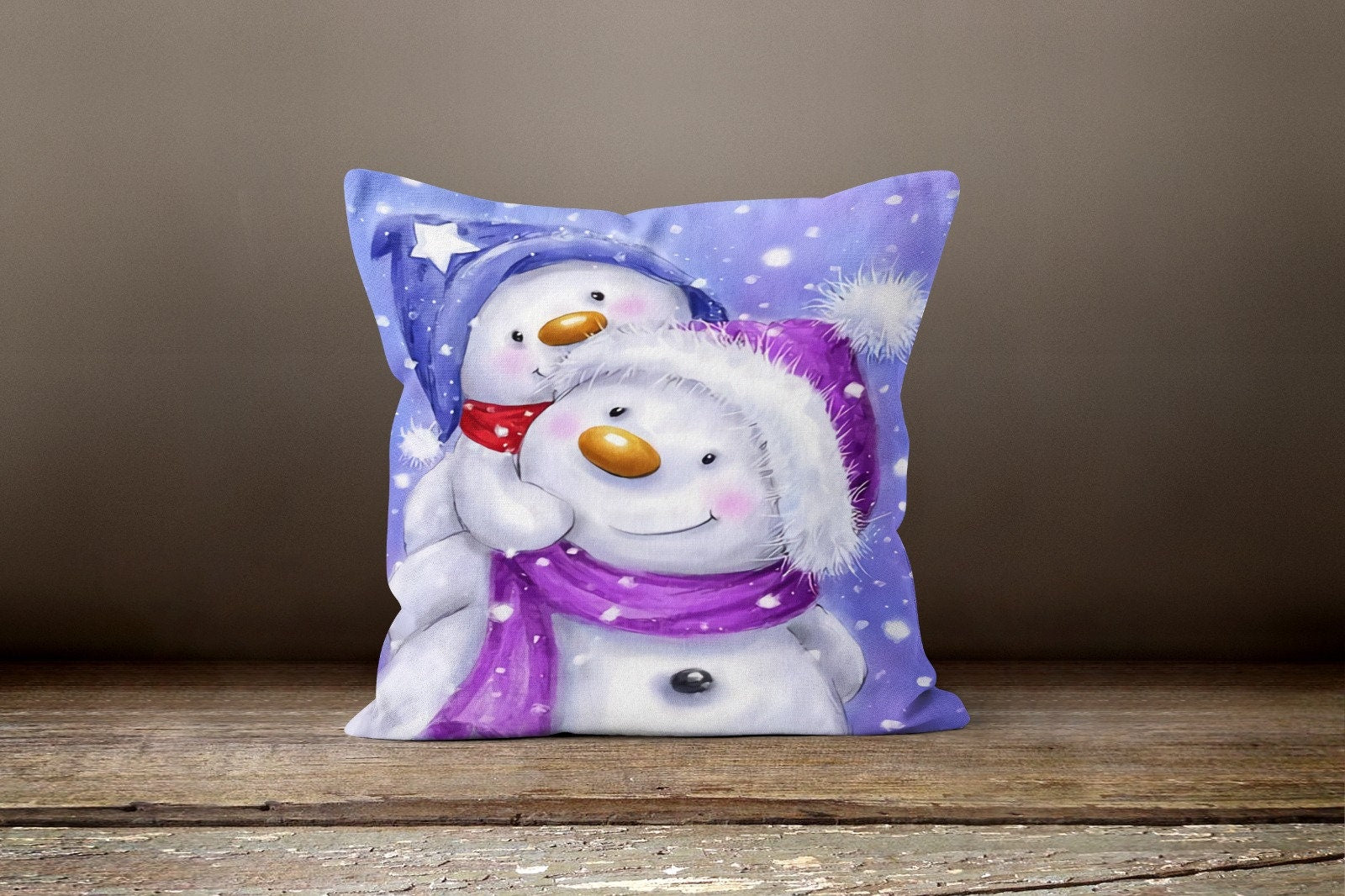 These elegant square decorative farmhouse style throw cushion covers with cute snowmen with hat and scarf;