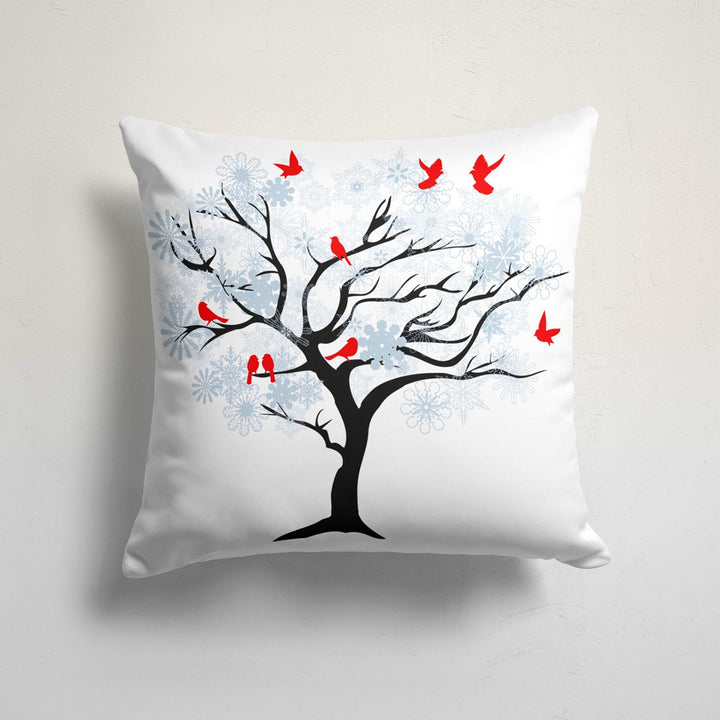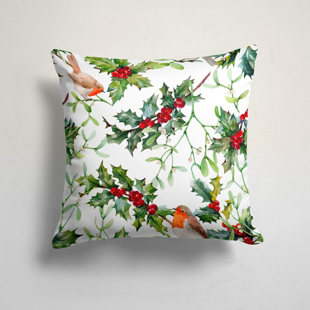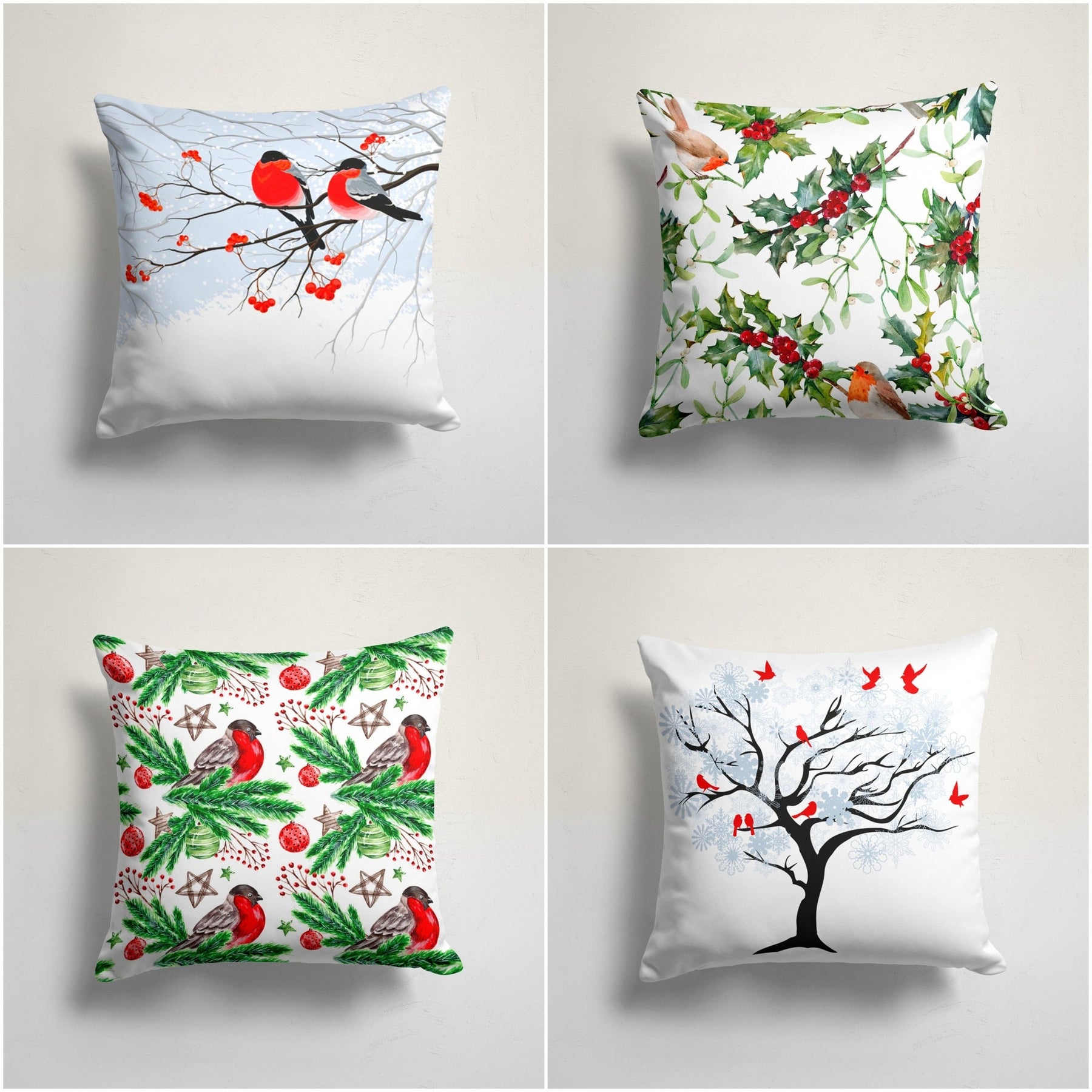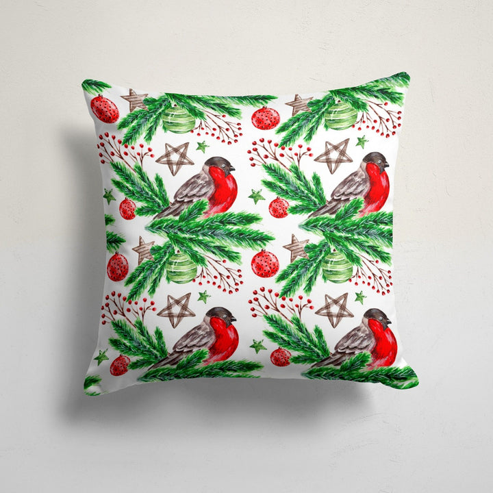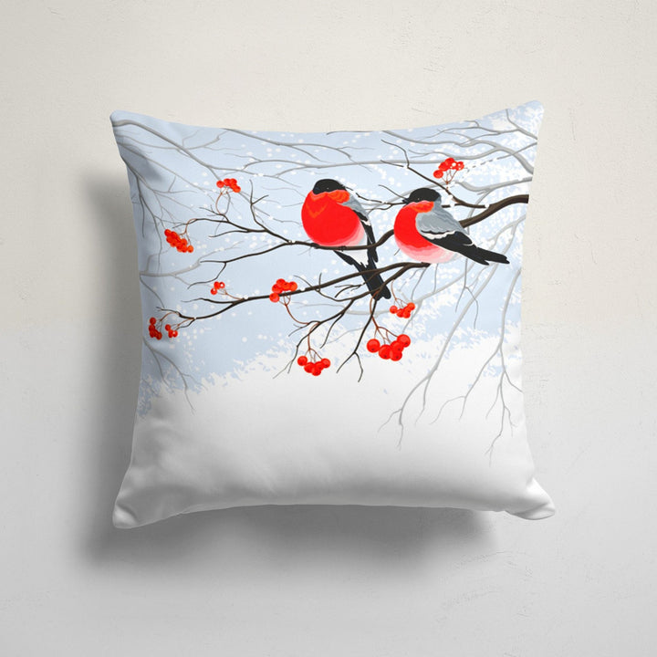 These elegant square decorative rustic farmhouse throw cushion covers with Red Bird and Berries;