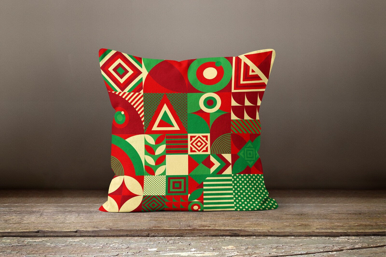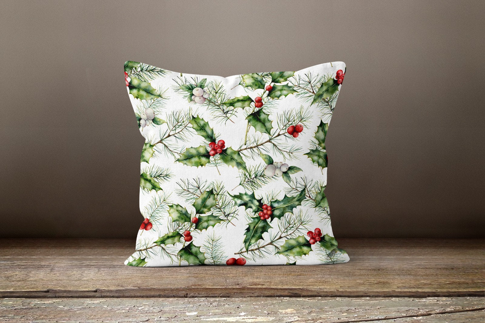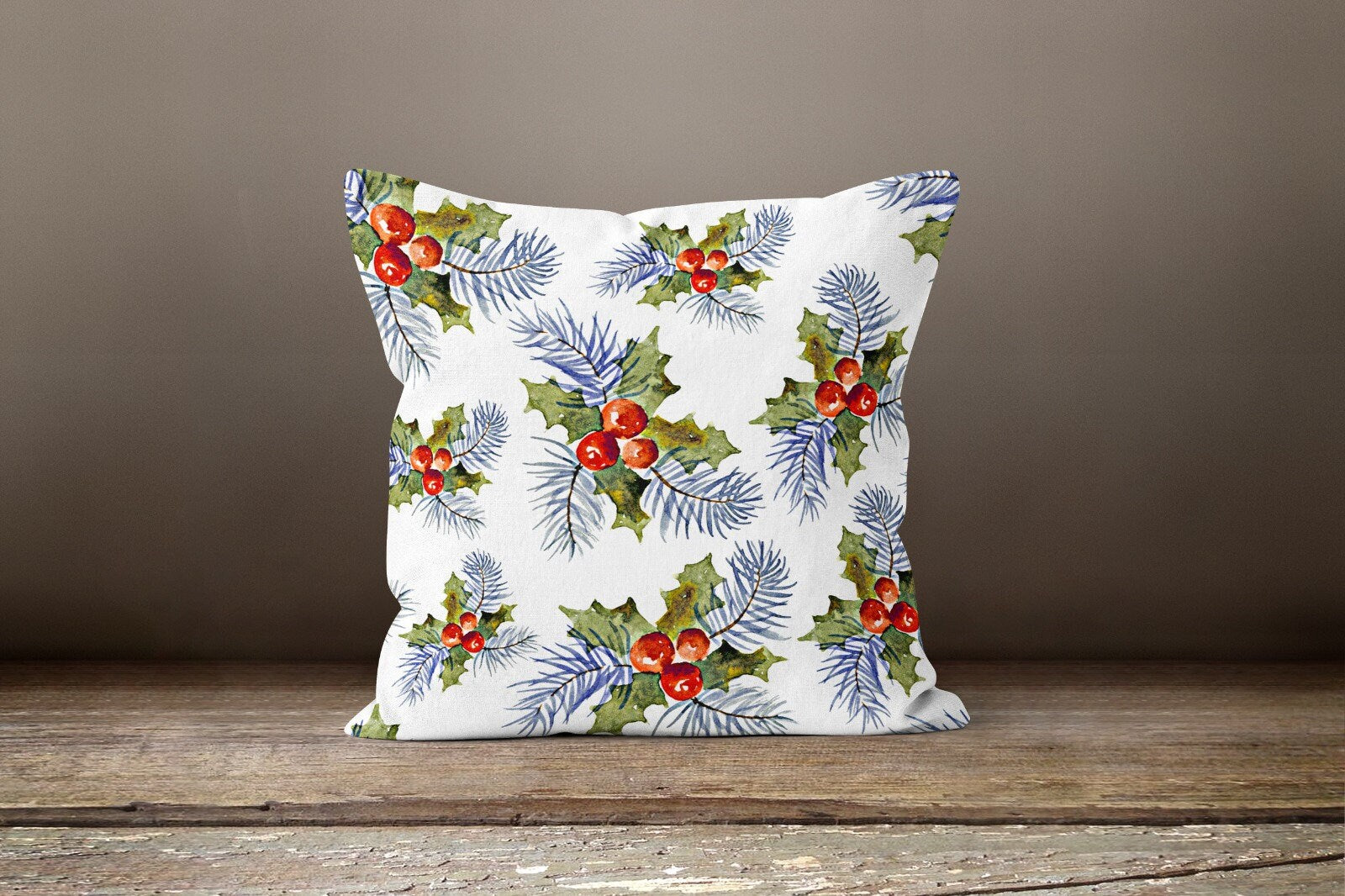 These decorative rustic home decor red Xmas cushion covers with red berries, green leaves and matching plaid design;