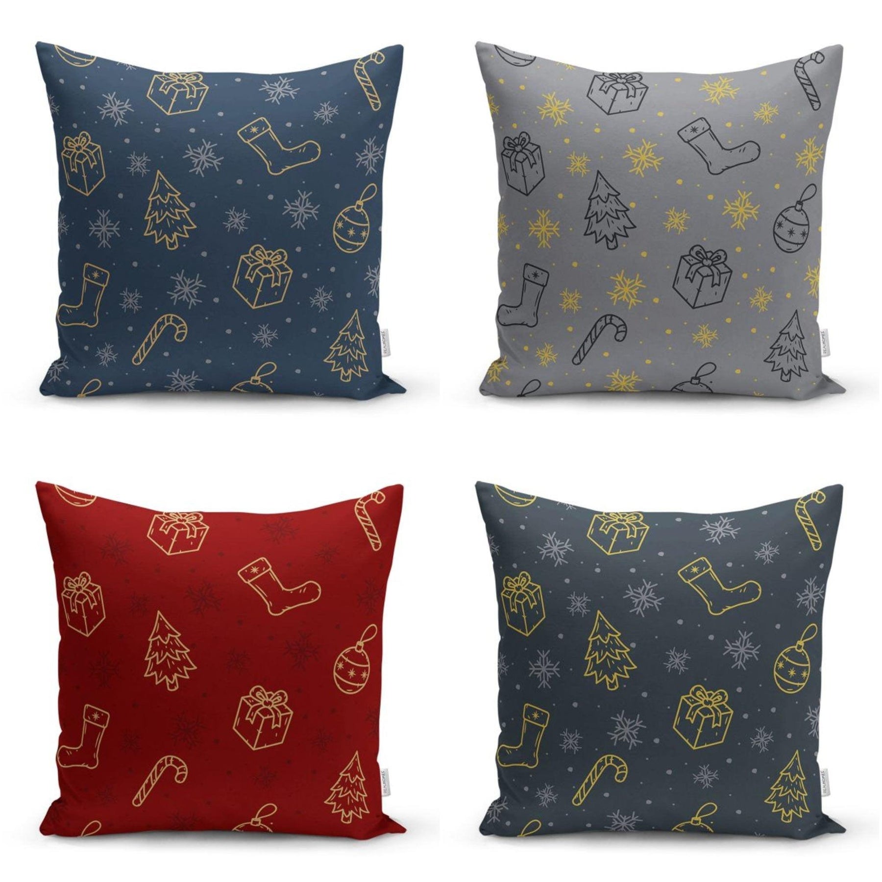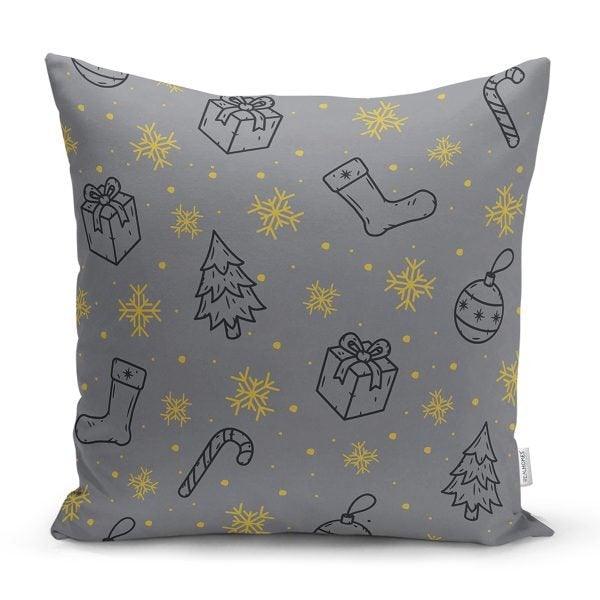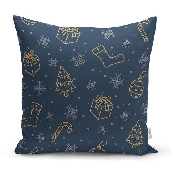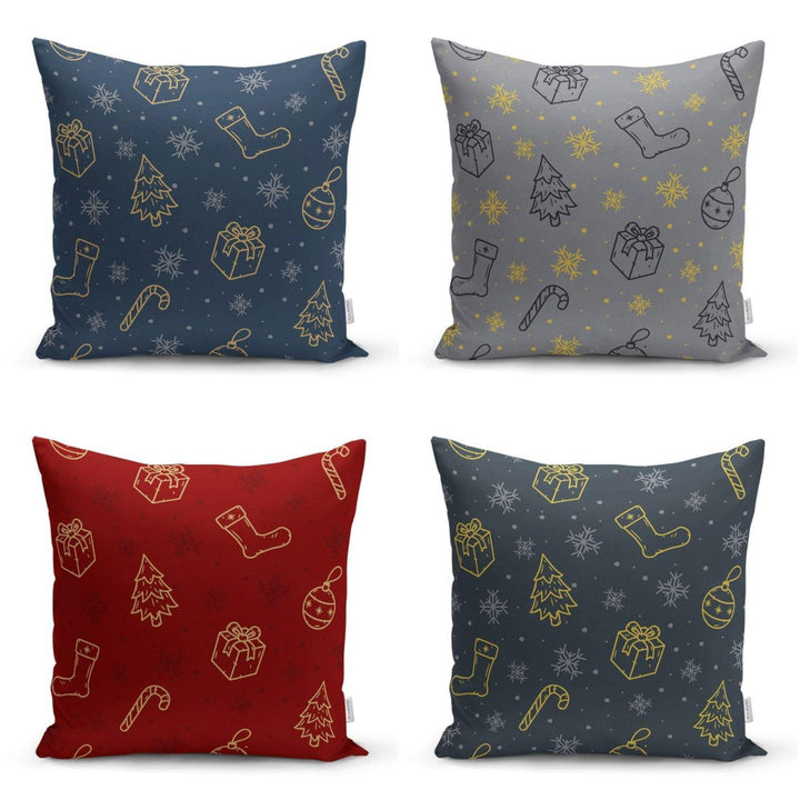 These elegant square decorative pillow covers with Xmas socks, gift box prints, Xmas tree and Xmas ornaments;