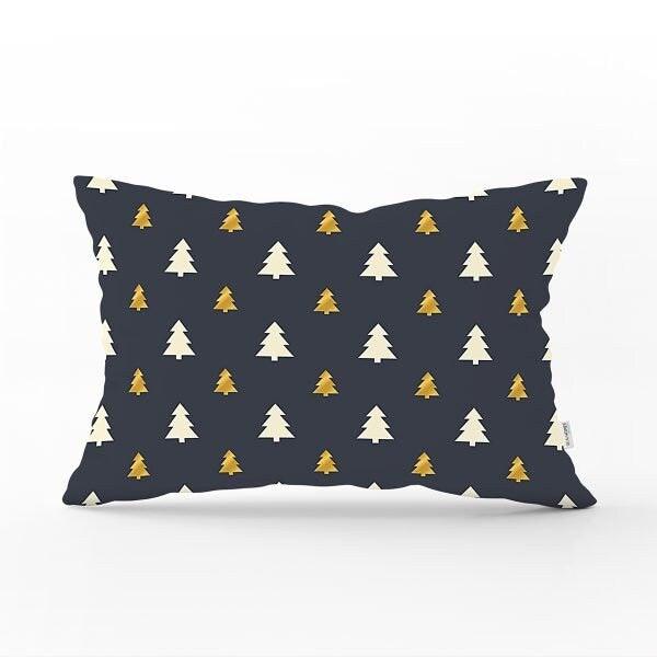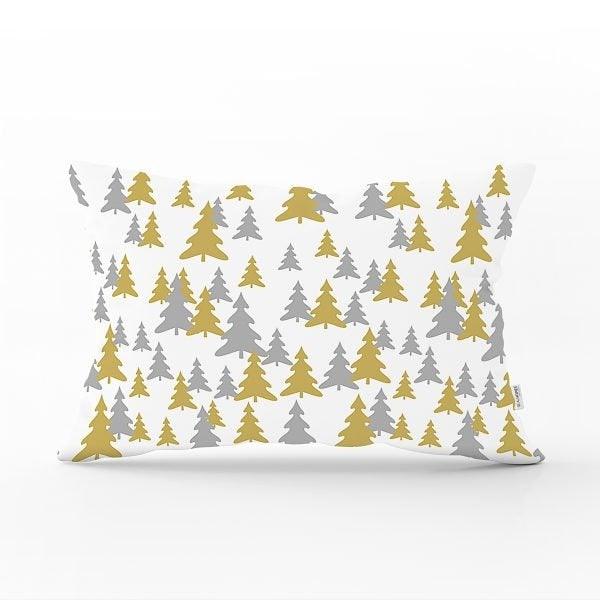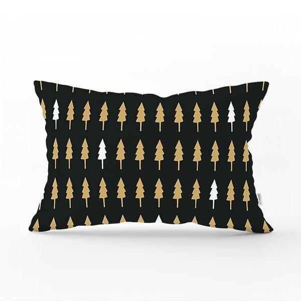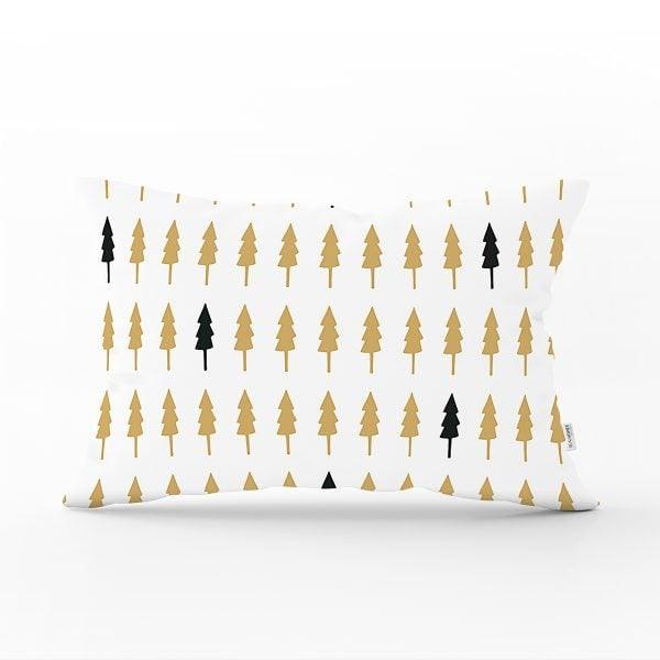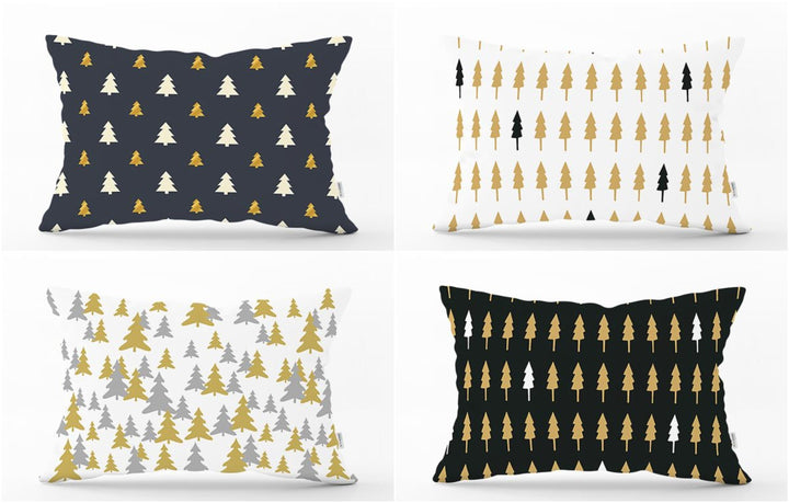 These rectangle farmhouse style pillow covers with black/white/gold/gray pine tree drawings;