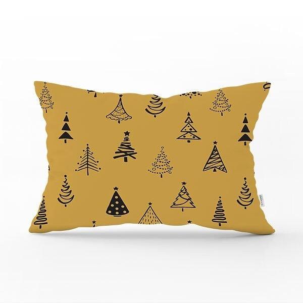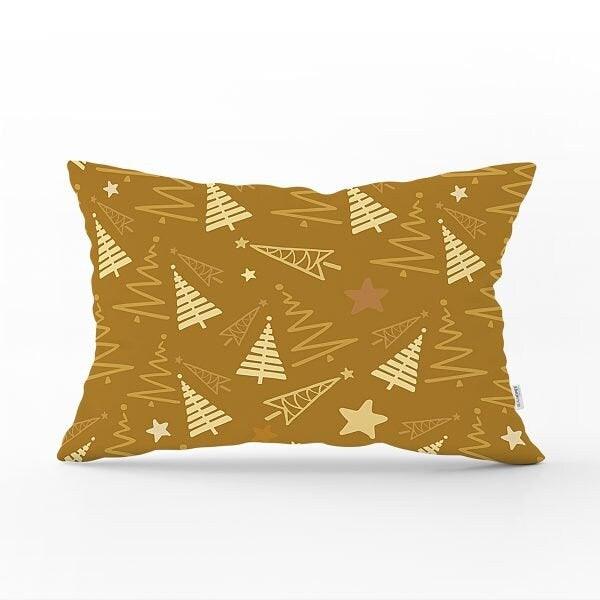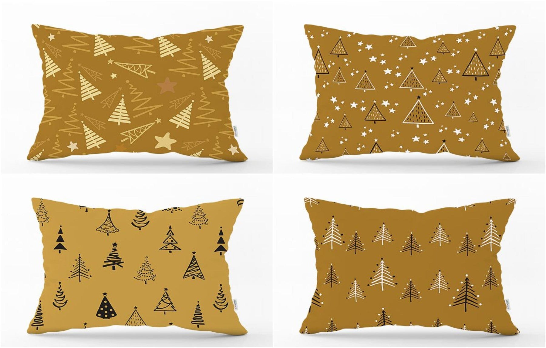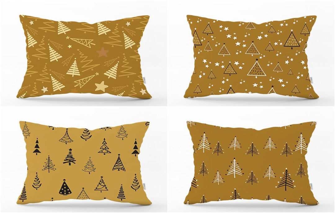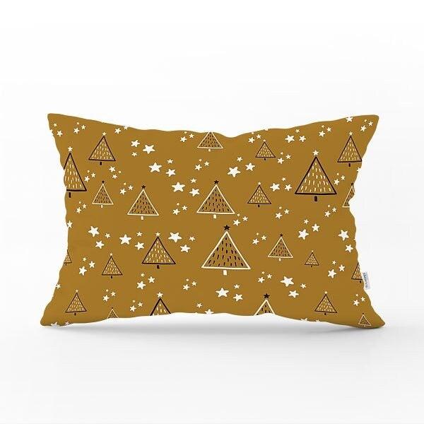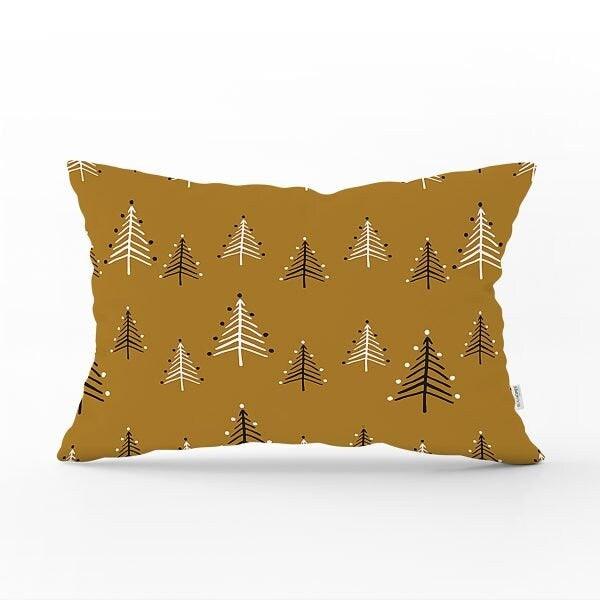 Pine Tree Printed Gold Color Lumbar Pillow Case