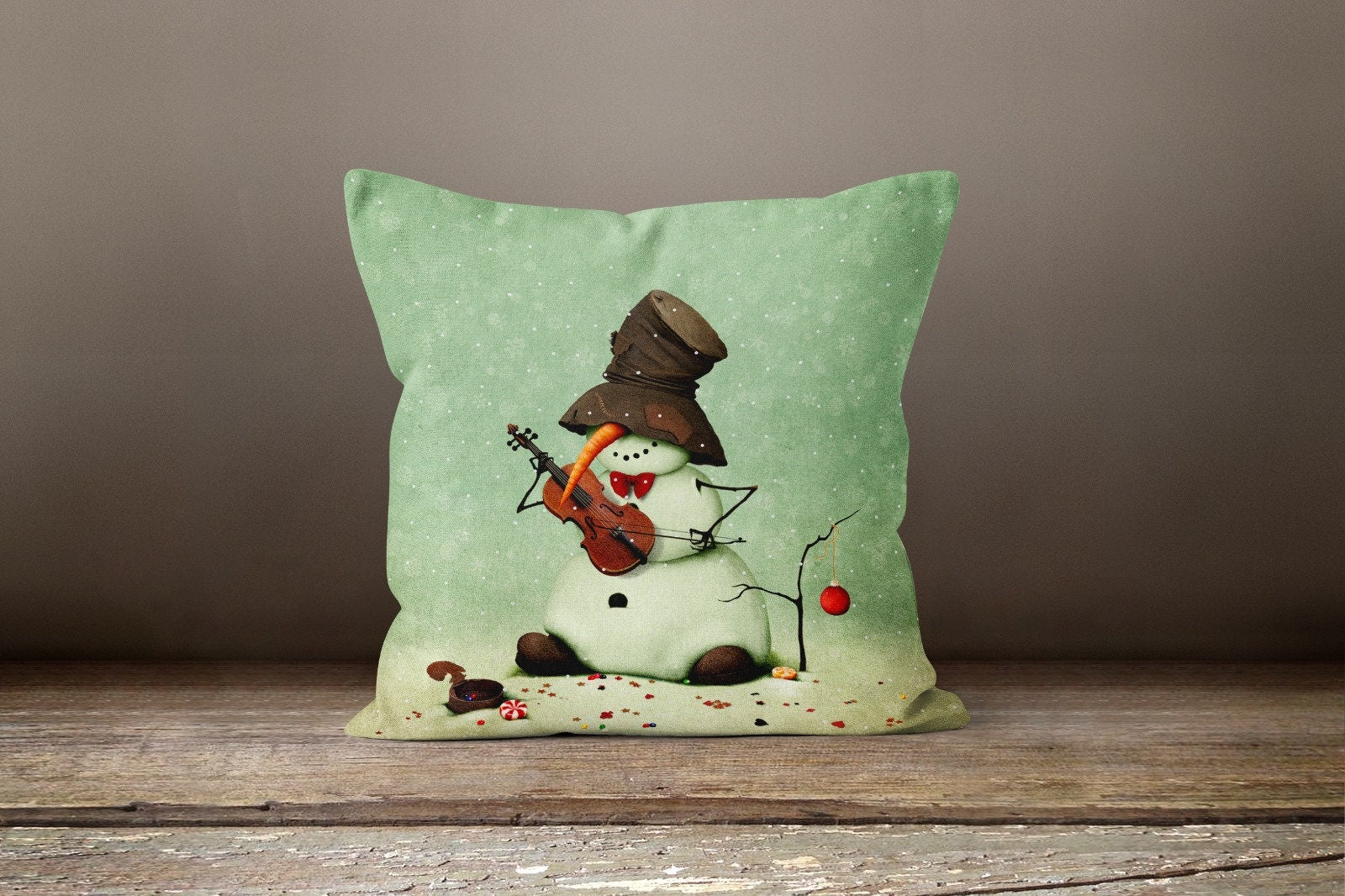These elegant square decorative farmhouse style throw cushion covers with cute snowmen, birds and Let Your Light Shine print;
