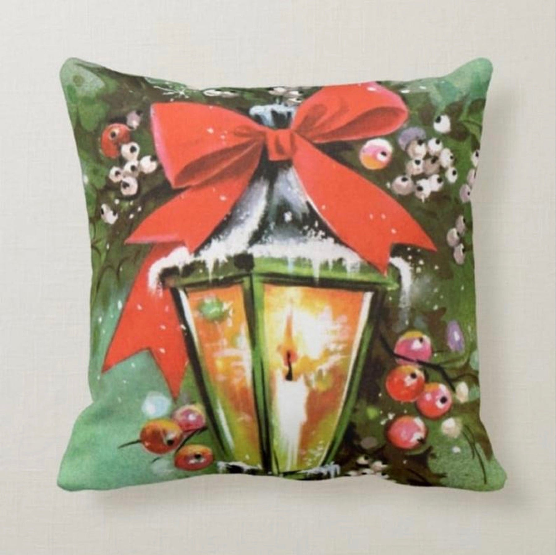 These elegant square Christmas decorative throw pillow tops with deer, cute snowman, snowflake and lantern design;