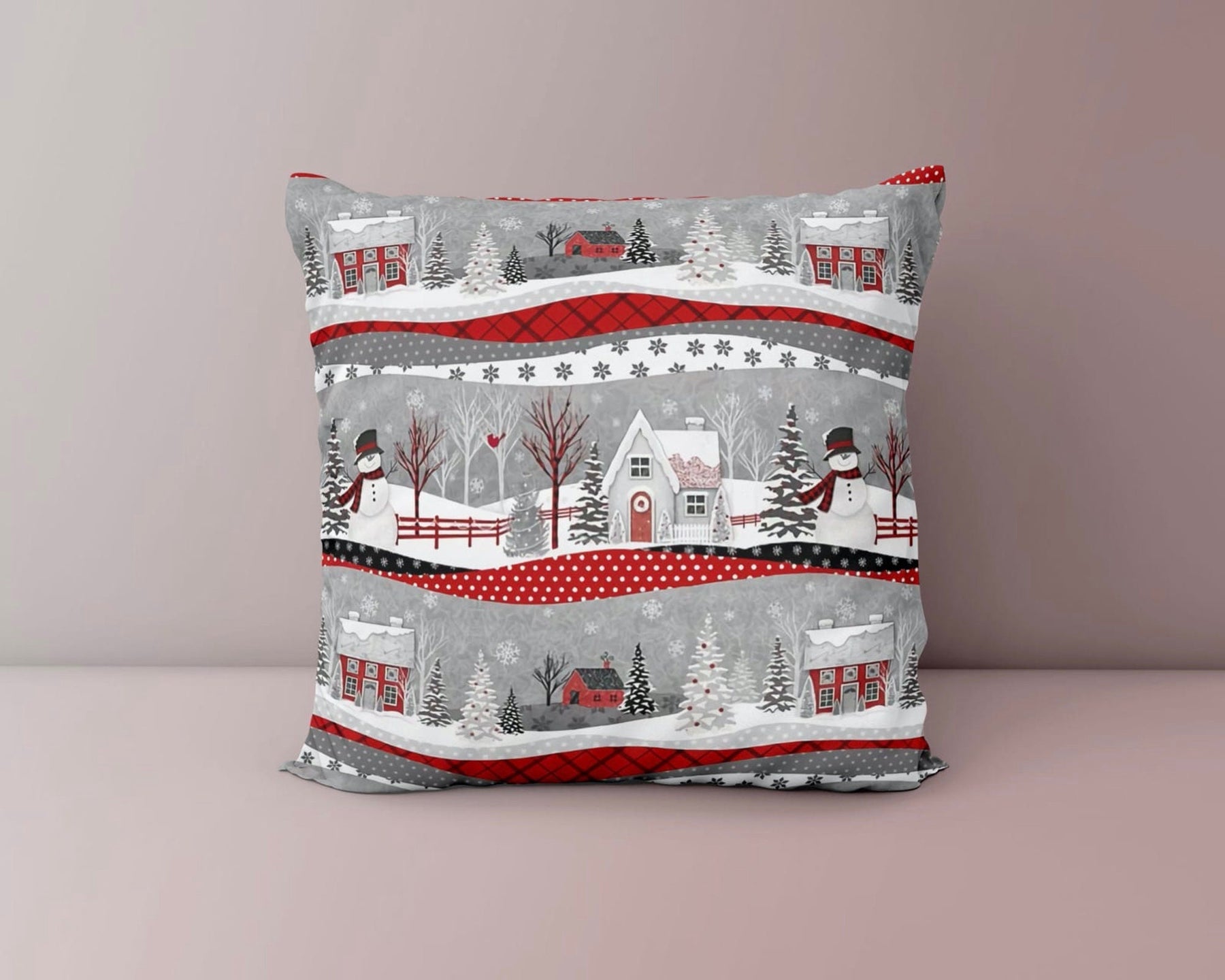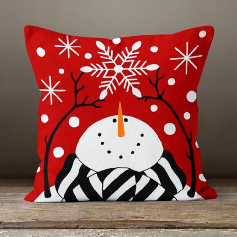 Winter Trend Pillow Cover|Cute Snowman Decor|Snowflake Pillow Top|Housewarming Merry Christmas Deer Throw Pillow|Decorative Winter Scenery