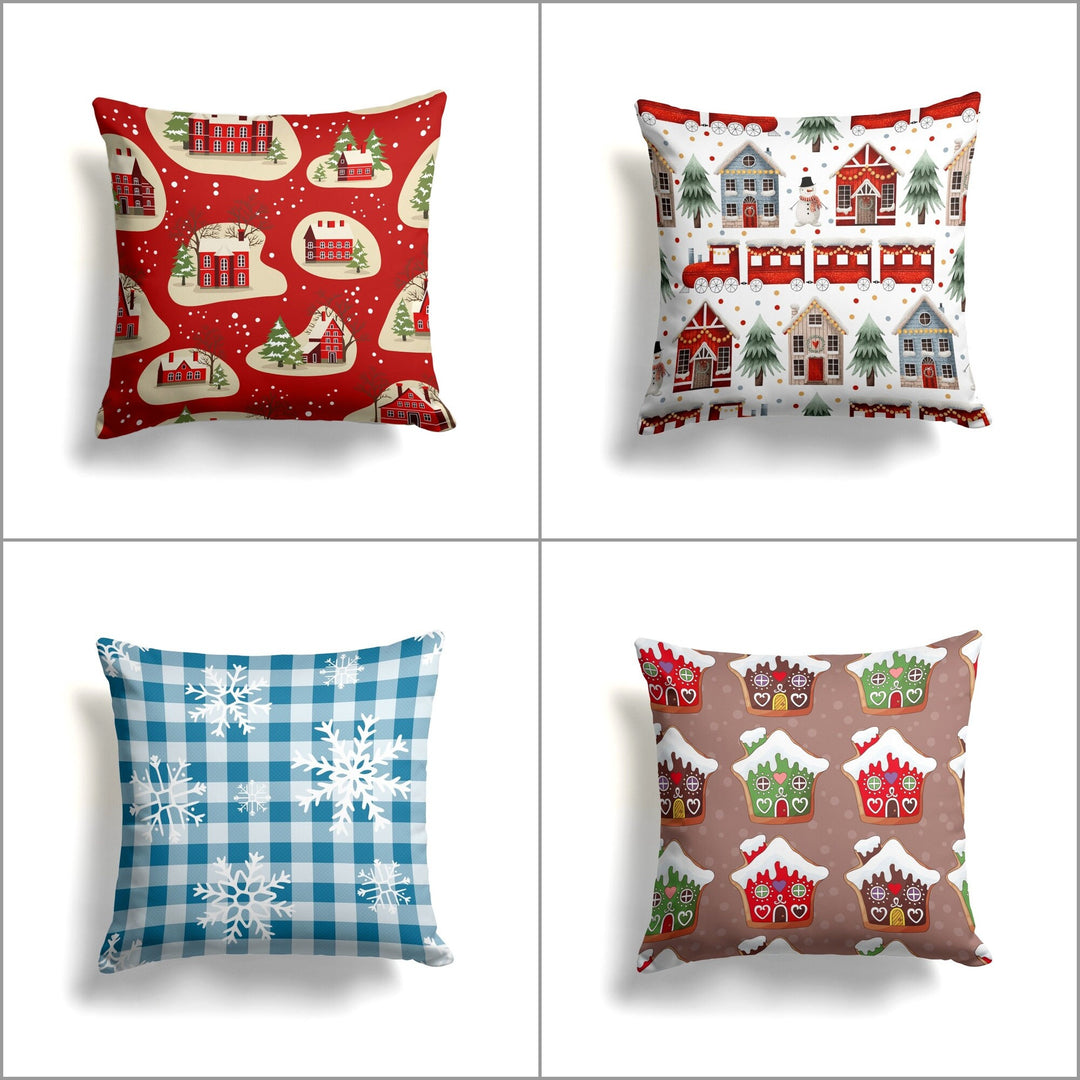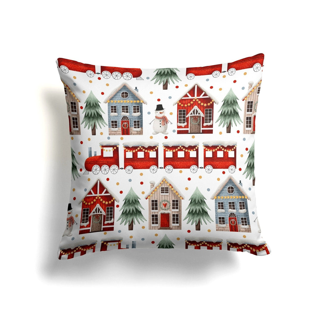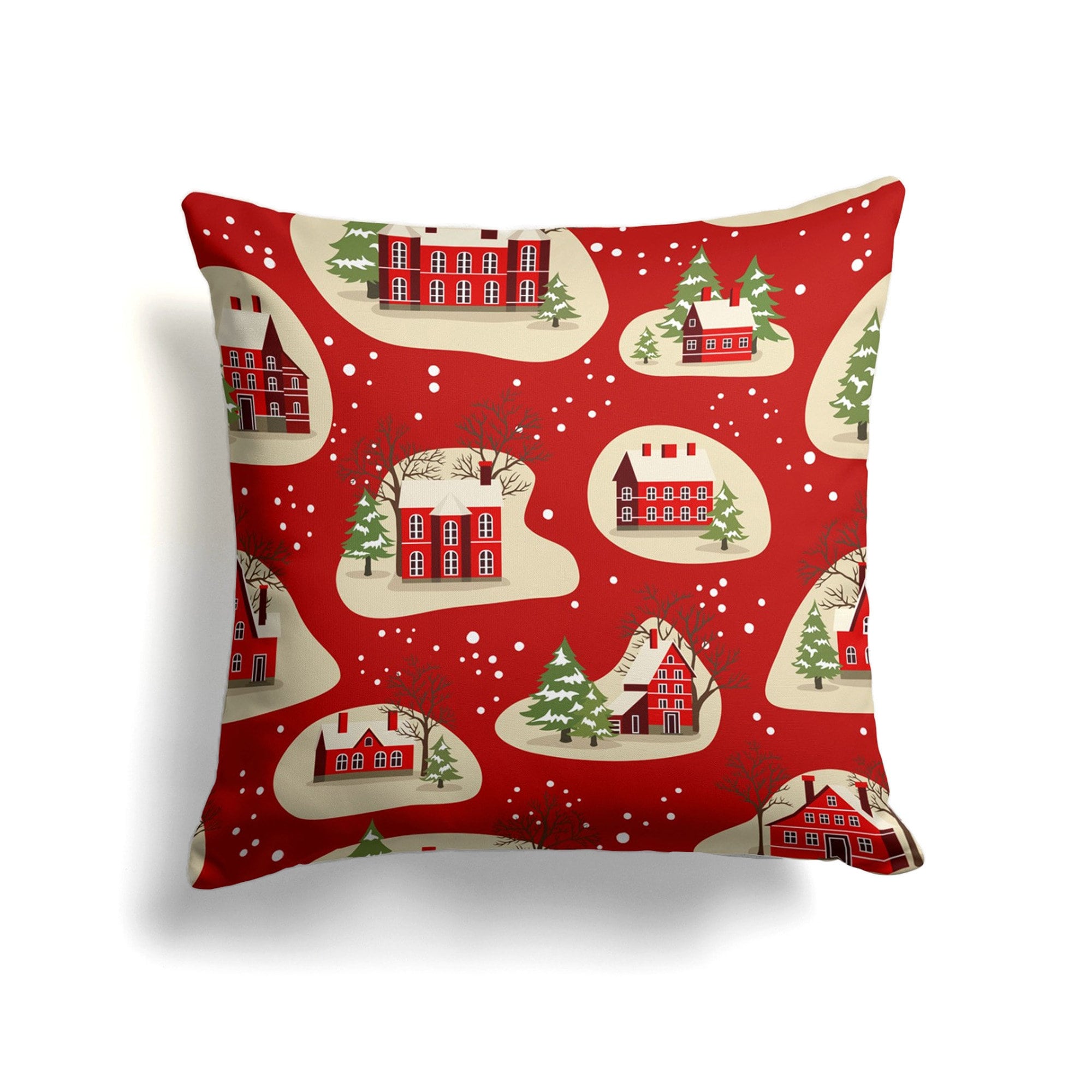 These elegant square decorative rustic farmhouse throw cushion covers with Snow, House, Snowflake and Pine Tree;