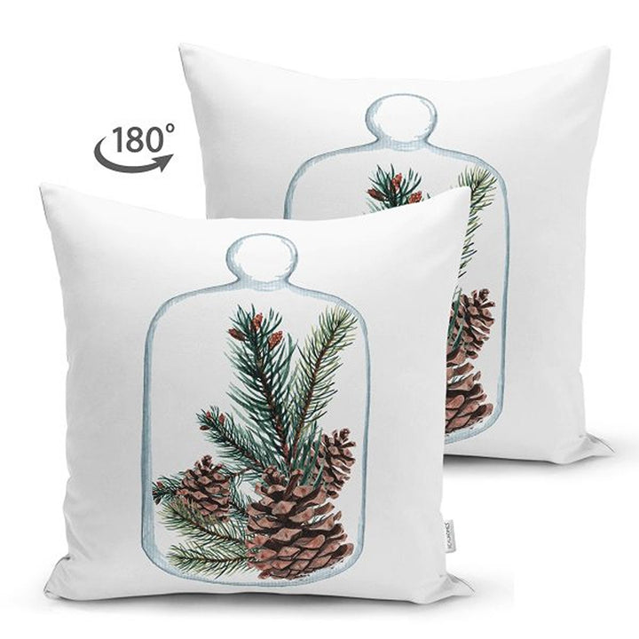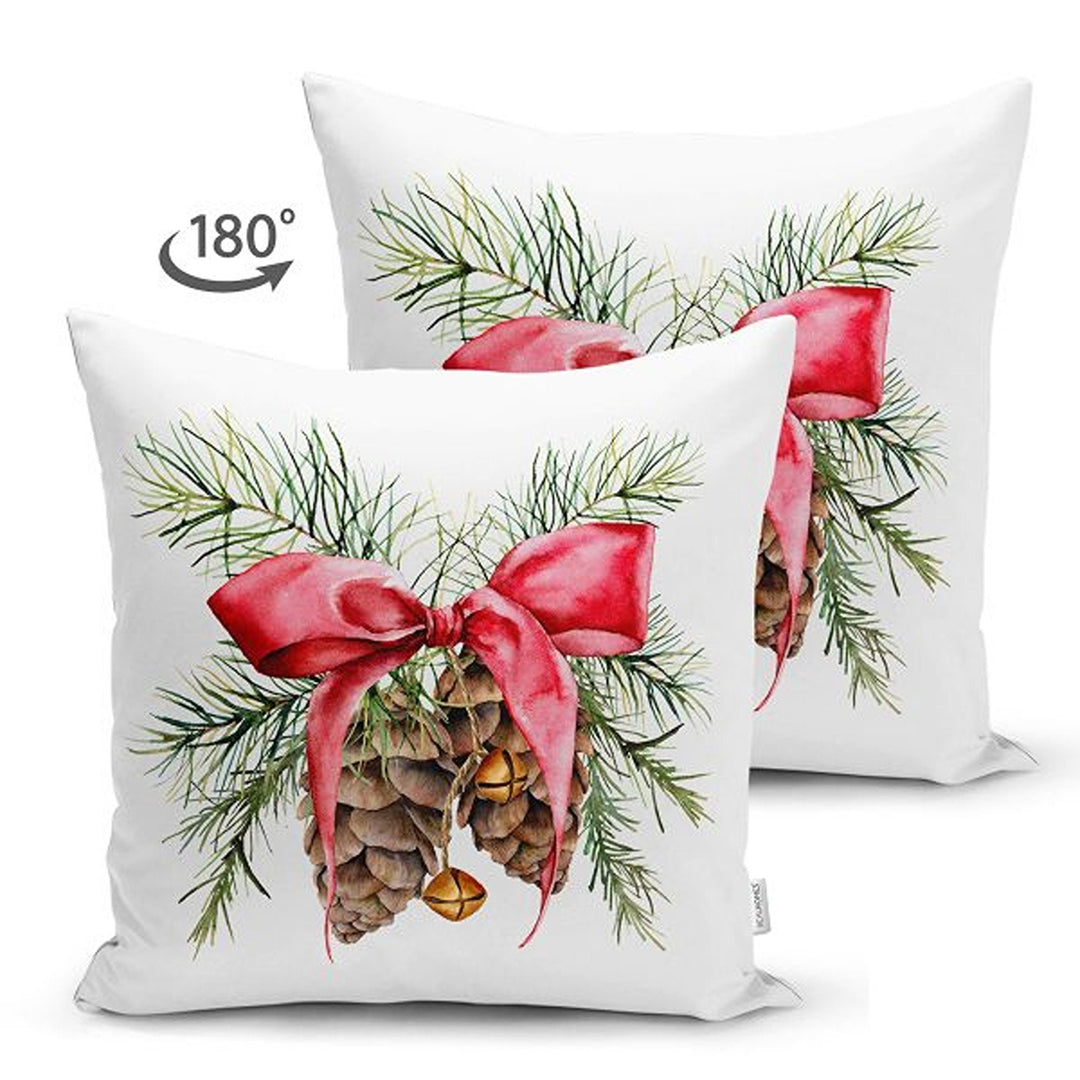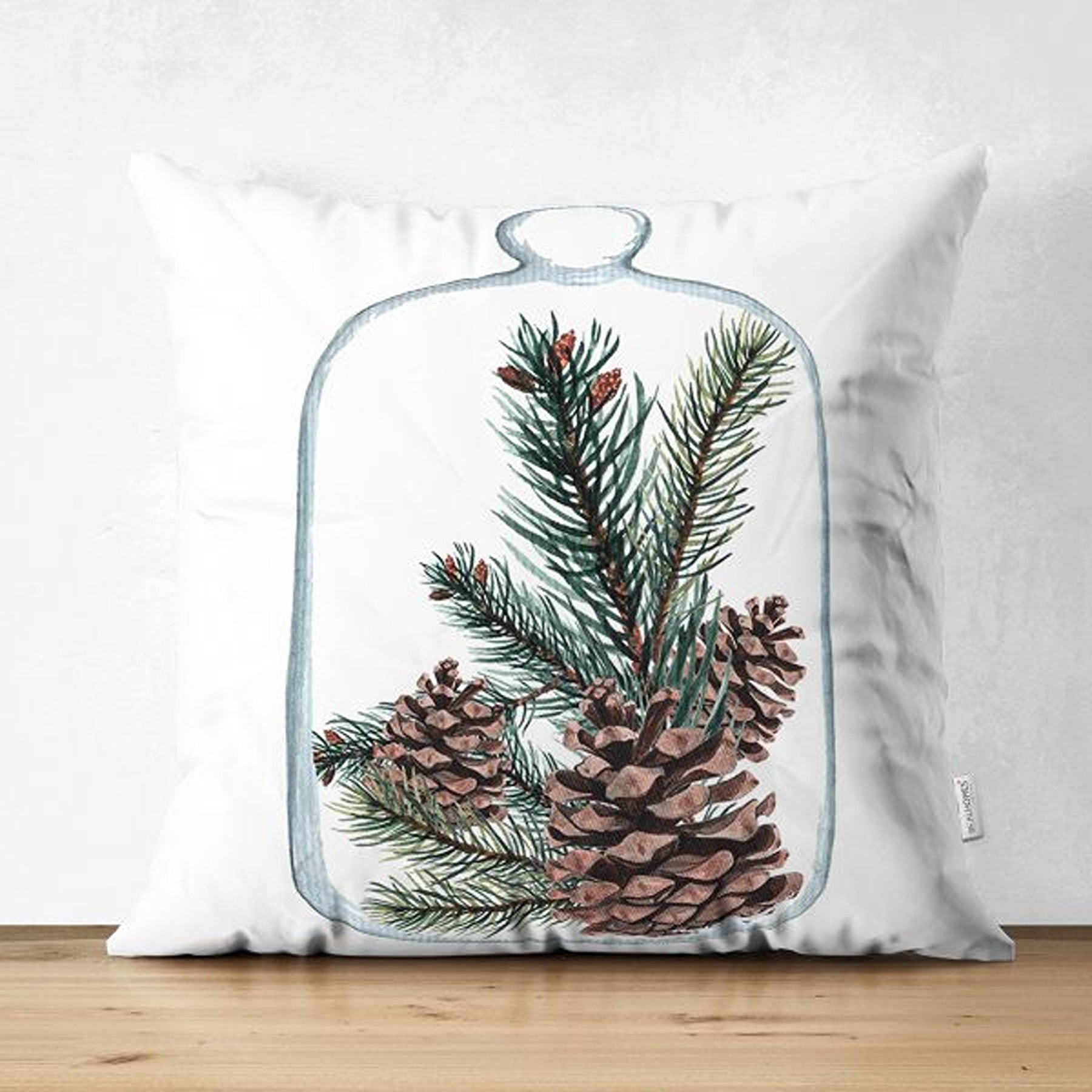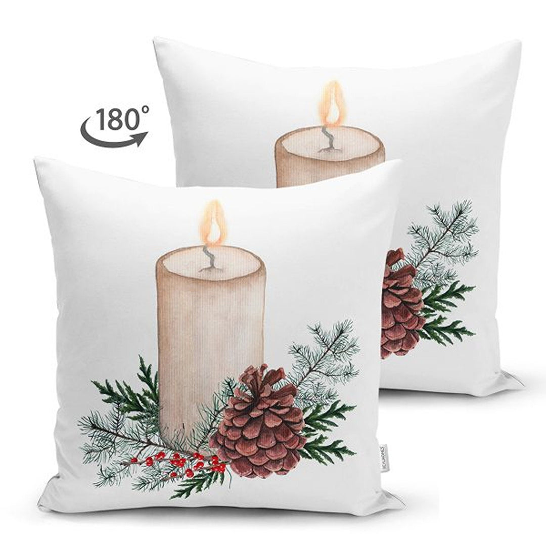 These elegant square decorative double-sided winter trend throw pillow covers with Red Poinsettia and White Rose, Red Ribbon with Pine Cone and Pine Tree Needles, Candle with Pine Cone;