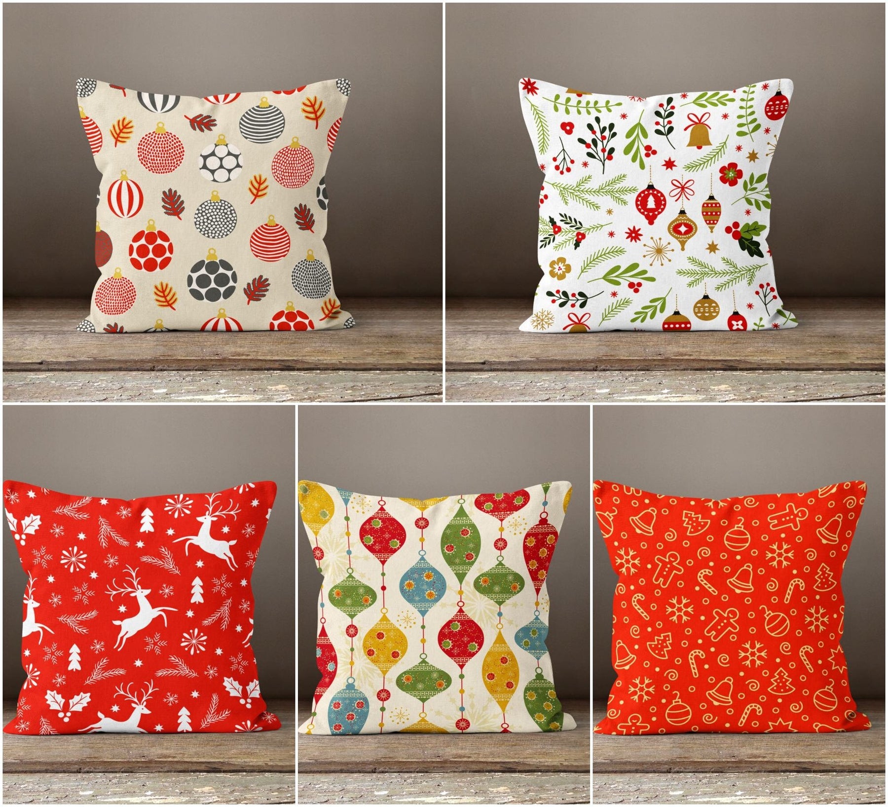 These elegant square decorative rustic farmhouse throw cushion covers with Xmas ornaments and deer;