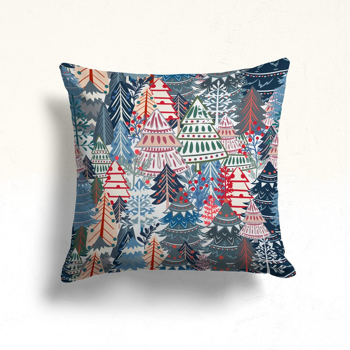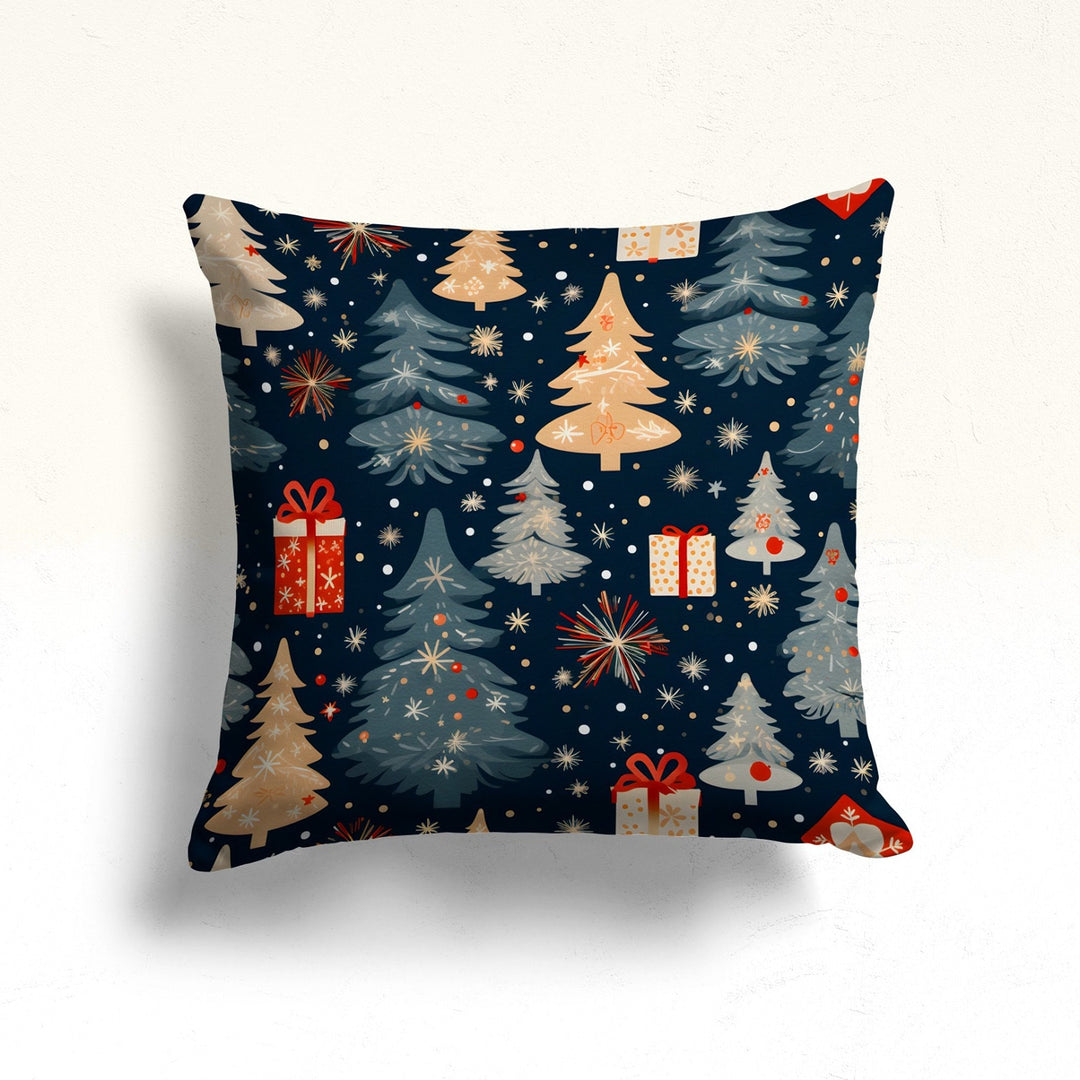 These elegant square decorative throw pillow covers with Xmas tree, pine tree, gift box, winter, Christmas print;