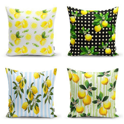 Yellow Lemons with Green Leafage Pillow Cover